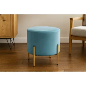 Tengerkék, bársony ülőpuff arany fém lábakkal, 35×40 cm