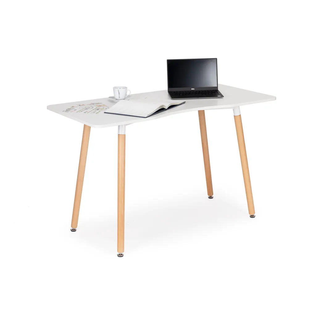 Modern fiókos számítógép- íróasztal fenyőfa lábakkal, 120x60x75 cm, fehér-fa szín