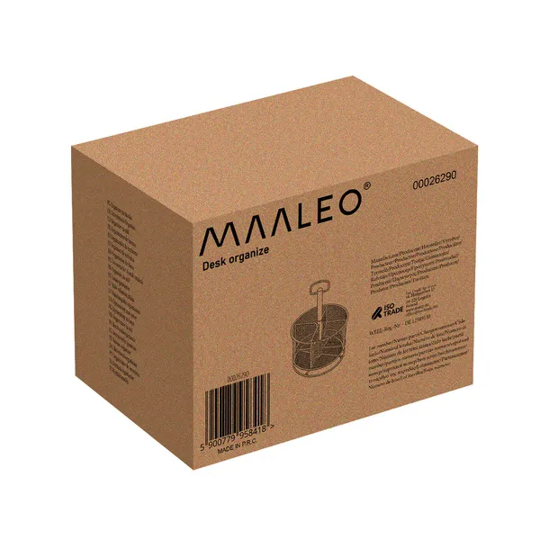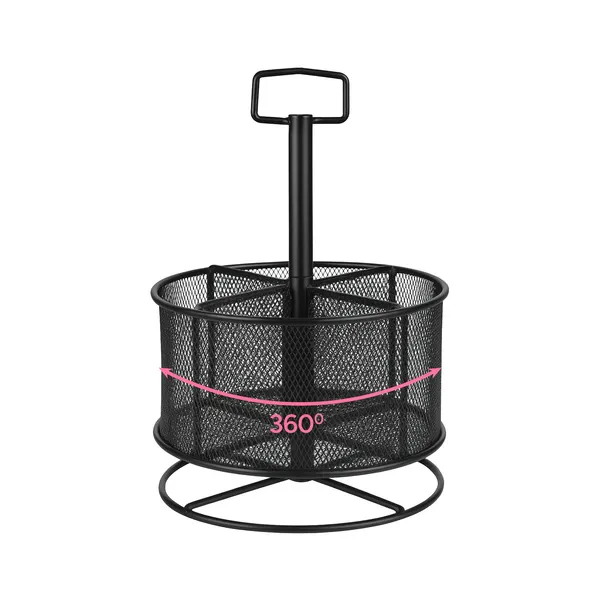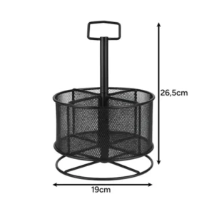 A 360°-ban forgatható, masszív fémszerkezetű rendszerező négy jól elkülönített rekesszel gyors hozzáférést biztosít tollaidhoz, ollóidhoz és egyéb eszközeidhez, miközben helyet szabadít fel az íróasztalodon és növeli munkahatékonyságodat. Csúszásmentes talpa és hordfüle révén bárhová, akár tárgyalóba is pillanatok alatt könnyedén áthelyezheted.