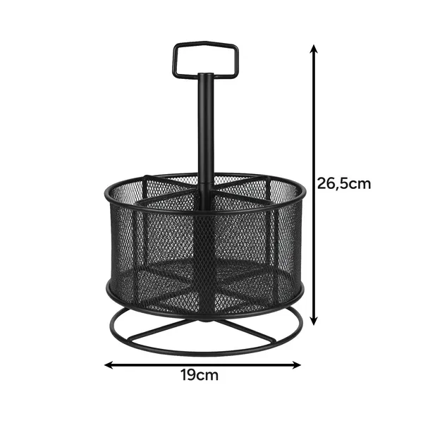 Forgatható fém asztali rendszerező, 4 rekesz, fekete, 26,5×19 cm