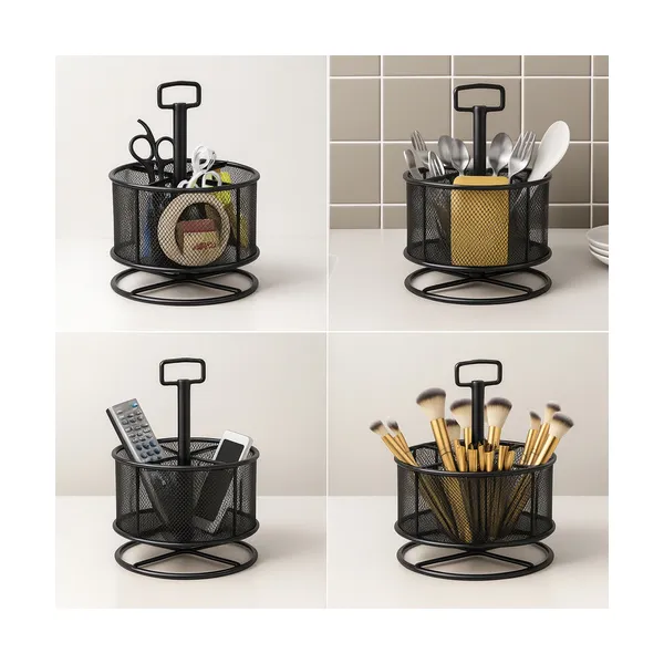 Legyen az irodádban vagy a gyerekszobában, ez a 360°-ban forgatható, fémhálós asztali rendszerező azonnal rendre utasítja a káoszt, és elegáns, loft hangulatot teremt.