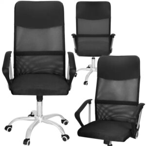 Kényelmes és tartós irodai szék, amelyet a hosszú munkanapokhoz terveztek. A puha, szivacsbetétes ülőfelületet fekete szövet borítja, a háttámla légáteresztő hálóból készült, felső részén elegáns ekobőr betéttel. A krómozott acél lábcsillag stabil alapot ad, a 360°-ban forgó görgők pedig kímélik a padlót.