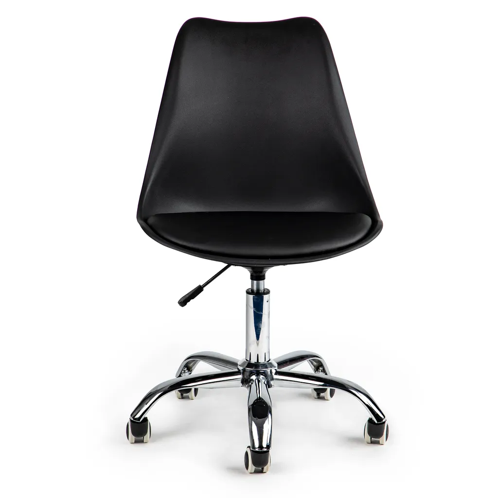 Hosszú órák a számítógép előtt? Nincs probléma! A ModernHome Forgószék magas háttámlája és lágy, fekete párnája optimális kényelmet nyújt. A tervezés központjában az áll, hogy Önnek ne legyen kellemetlen vagy fájdalmas érzése még hosszú munkaórák után sem. 🖥️👩‍💻