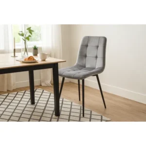 A puha bársony kárpit és a steppelt háttámla luxus érzetet, míg az ergonomikus forma hosszan tartó kényelmet ad. Környezetbarát, masszív váza akár 120 kg-ig terhelhető, így étkeződ, nappalid vagy irodád elegáns, időtálló bútordarabja lesz. Az univerzális szürke árnyalat könnyen illeszthető modern vagy klasszikus enteriőrökhöz.