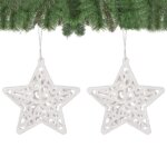 A csillámos fehér díszek törésbiztos műanyagból készültek, így biztonságosan dekorálhatod a fát kisgyermekek vagy háziállatok mellett is. A 2 darabos készlethez ajándék akasztók tartoznak, így pillanatok alatt elegáns, ragyogó ünnepi hangulatot varázsolhatsz.