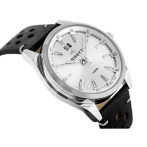 A svájci Ronda szerkezet és a karcálló zafírüveg megbízható pontosságot és tartósságot kínál, míg az elegáns fekete bőrszíj kényelmes viseletet biztosít. 50 m-es vízállóságával és praktikus dátumkijelzőjével ez a karóra ideális társ a hétköznapokban és az üzleti alkalmakon.
