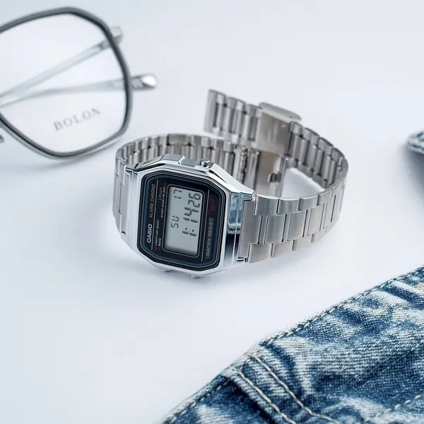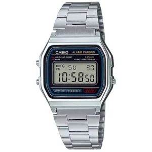 A Casio A158WA-1D egy legendás, 80-as éveket idéző digitális karóra, amely az eredeti dizájnt modern megbízhatósággal ötvözi. Könnyű, mégis tartós rozsdamentes acél házzal és milánói jellegű szíjjal rendelkezik, így egész nap kényelmes viselet.
