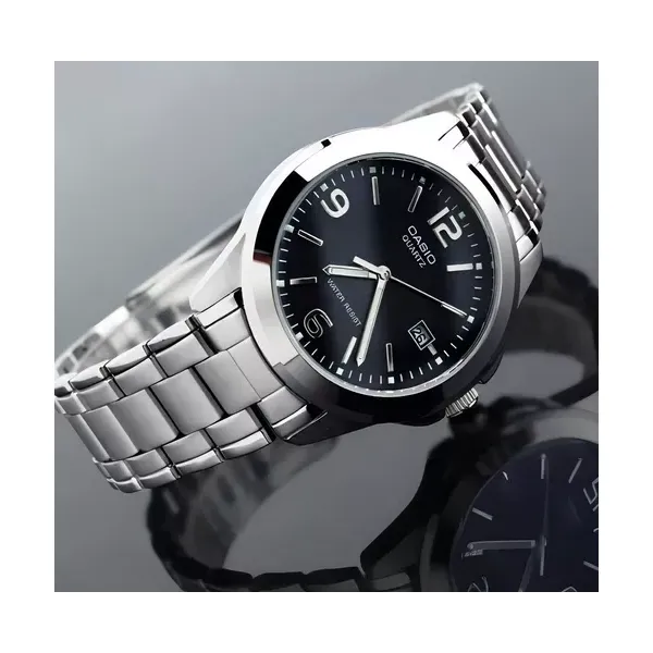 Pontos kvarc szerkezetű, nemesacél Casio karóra fekete számlappal és dátumkijelzéssel, amely 30 m-ig vízálló. Elegáns, vékony kialakítása és a mellékelt díszdoboz ajándékként is ideálissá teszi.