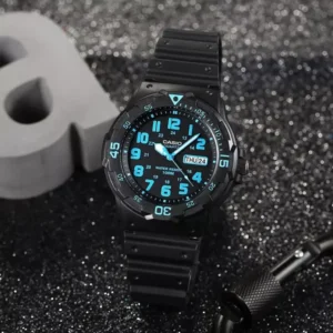 Casio férfi kvarc óra wr100m fekete kék dátum 44mm
