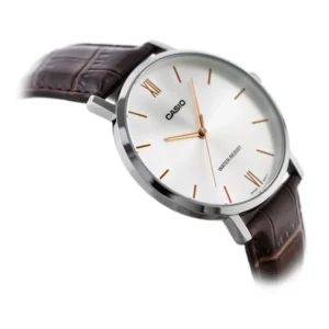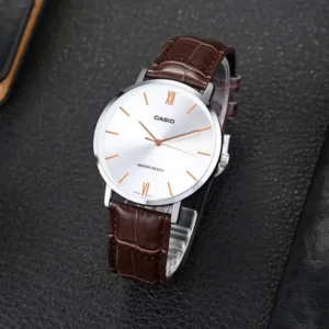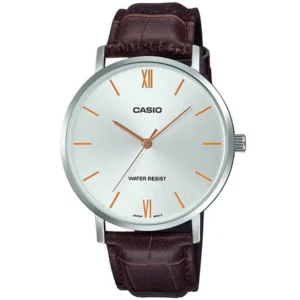 Casio férfi kvarcóra ezüst-barna bőrszíjjal