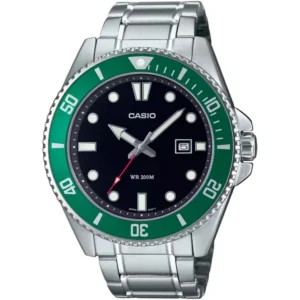 200 m-es vízállóságával és egyirányú lünettájával ez a rozsdamentes acél Casio búváróra biztonságot és pontosságot nyújt a merüléseknél, míg a karcálló üveg és a lumineszcens mutatók a mindennapokban is tartósságot és kiváló leolvashatóságot garantálnak.
