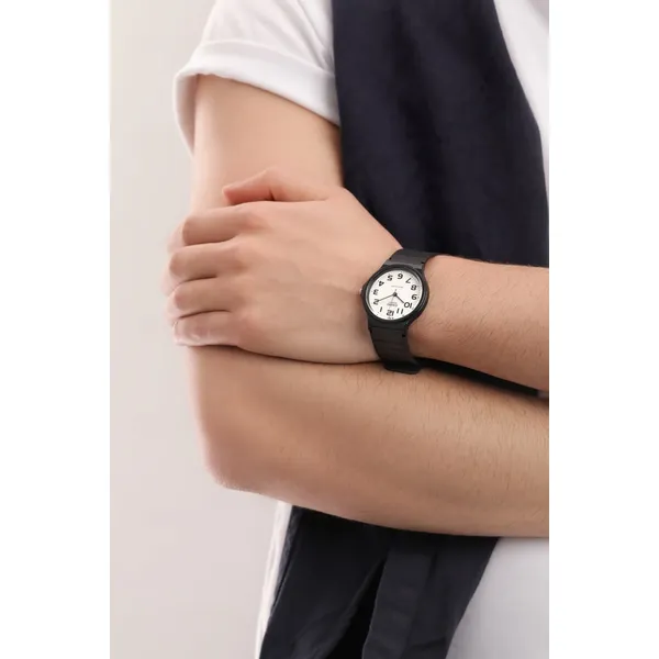 A Casio MQ-24-7B2 a minimalista elegancia és a hétköznapi praktikusság tökéletes találkozása. Letisztult, fehér számlapján jól olvasható fekete indexek és mutatók mutatják az időt, a mindössze 35 mm-es, könnyű műanyag tok pedig szinte észrevétlen a csuklón. Uniszex kialakításának köszönhetően bárki viselheti, aki kedveli a visszafogott, időtlen stílust.