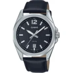 A Casio MTP-E725L-1AVDF férfi karóra stílusos kiegészítő, amely ötvözi az elegáns megjelenést a mindennapi funkcionalitással. A 42 mm-es, polírozott ezüstszínű nemesacél tok és a fekete, valódi bőrből készült szíj időtlen hatást kelt, ezért egyaránt megállja a helyét üzleti tárgyaláson és hétvégi programon.