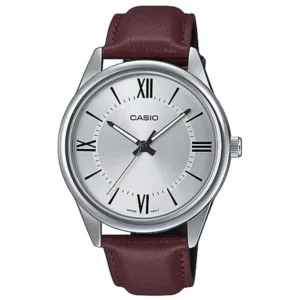 Casio MTP-V005L-7B5 férfi kvarc karóra, barna bőrszíj, ezüst 40 mm