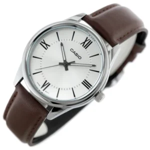 A Casio MTP-V005L-7B5 férfi karóra letisztult, időtlen stílussal emeli ki megjelenésedet, legyen szó munkahelyi tárgyalásról vagy hétvégi kikapcsolódásról. Az ezüst számlap és a kontrasztos, könnyen leolvasható indexek elegáns összhangot alkotnak a barna, valódi bőrszíjjal. A megbízható japán kvarc szerkezetnek köszönhetően mindig pontos időt mutat, míg a 30 m-es vízállóság gondtalan viselhetőséget biztosít esőben és kézmosás közben is.
