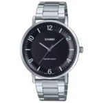 Letisztult fekete számlapjával és fényes acélszíjával a Casio MTP-VT03D-1B elegáns társ üzleti és hétköznapi viselethez is. Precíz kvarc szerkezete és 30 m-es vízállósága gondtalan megbízhatóságot kínál minden nap.
