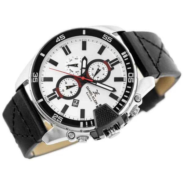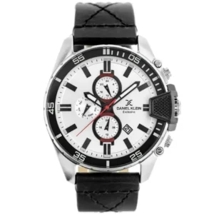 Daniel Klein Exclusive férfi karóra quartz bőr szíj WR50, ezüst-fekete