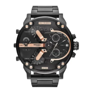 A Diesel DZ7312 Mr. Daddy férfi karóra feltűnő, oversize kialakításával és négy önálló kvarc szerkezetével ideális választás azoknak, akik egyetlen órával több időzónát szeretnének követni. A fekete PVD bevonatú, rozsdamentes acél tokot és szíjat elegáns rózsaarany részletek dobják fel, míg a kronográf és a dátumkijelzés praktikus mindennapi funkciókat kínálnak.