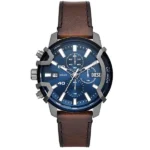 Rozsdamentes acél tok, kék számlap és valódi barna bőrszíj elegye teszi ezt a karórát stílusos, kényelmes viseletté. A kronográf, dátumkijelzés és 5 ATM vízállóság gondoskodik arról, hogy minden helyzetben megbízható társ legyen.