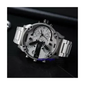 A Diesel Mr. Daddy 2.0 DZ7421 férfi karóra impozáns, 57 mm átmérőjű tokjával és letisztult fehér számlapjával azonnal kitűnik a tömegből. A hipoallergén, ezüst színű rozsdamentes acél tok és braszóleta prémium érzetet, míg a 4 független kvarc szerkezet rendkívüli funkcionalitást kínál.