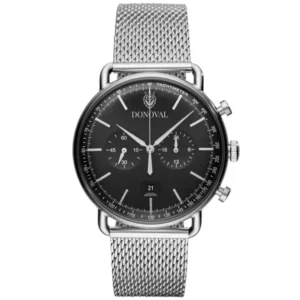 A Donoval Chronostar DL0028 karóra egy elegáns, klasszikus férfi időmérő – tökéletes mindennapi viseletre, valamint különleges alkalmakra is. Az óraház és a hálós karkötő rozsdamentes acélból készült, ami hosszú élettartamot biztosít. A sötétkék számlapon, amelyet ásványi üveg véd, megtalálható a hónap napja, a kronográf kijelzések és a fehér órajelzők. Az órát Miyota kvarc szerkezet hajtja.