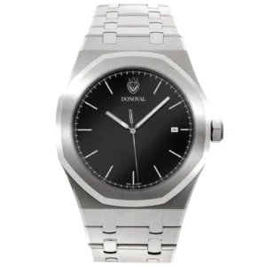 A Donoval Otto DL0007 elegáns férfi karóra, amely a mindennapi viseletet és az alkalmi megjelenést egyaránt stílusossá teszi. Rozsdamentes acél tokja és szíja tartós védelmet nyújt, míg a fekete számlap ezüst színű indexeivel letisztult, modern hatást kelt. A pontos japán Miyota kvarc-szerkezet és a praktikus dátumkijelző gondoskodik a megbízhatóságról, az ásványi üveg pedig óvja a számlapot a karcolásoktól.