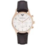 Az Emporio Armani Beta AR1916 férfi karóra kifinomult megjelenést és megbízható kvarc pontosságot kínál, így tökéletes kiegészítő az irodai viselethez és a hétköznapokhoz egyaránt. A 43 mm-es, rózsaarany színű rozsdamentesacél tokot ásványi üveg védi, a fehér számlap pedig kronográf-, dátum- és 24 órás kijelzéssel szolgál.