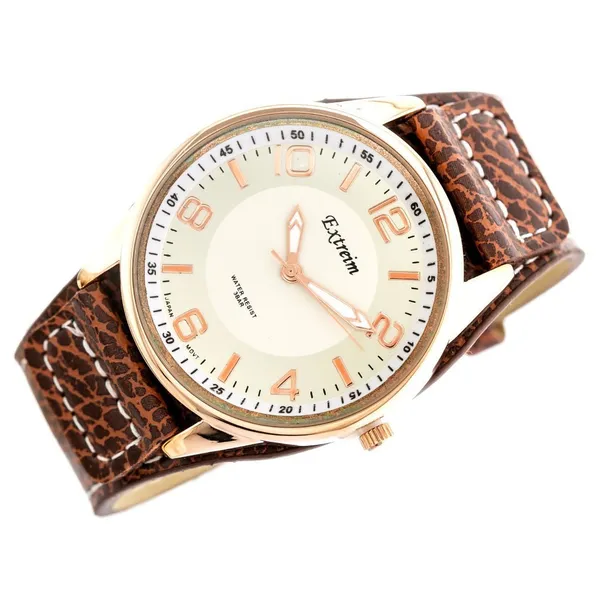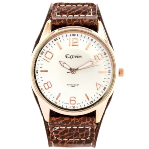 Az Extreim férfi karóra a japán Miyota kvarc szerkezettel megbízható pontosságot kínál, klasszikus, mégis sportos megjelenéssel párosítva. A 42 mm-es réz színű tok és a fehér számlap letisztult összhangja mindennapi és alkalmi viselethez is passzol.