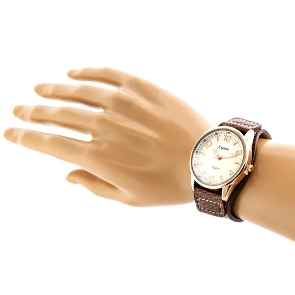 Japán Miyota kvarc szerkezete és karcálló minerál üvege révén mindig pontos időt és tartós fényt biztosít, míg a barna szövet szíj légáteresztő kényelmet nyújt a mindennapokban.