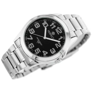 Férfi ezüst kvarcóra – fekete számlap, 42mm tok