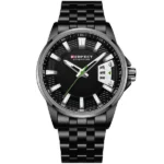 A japán Miyota szerkezetű, fekete IPB bevonatú Perfect karóra pontos időmérést, dátumkijelzést és karcálló minerál üveget kínál elegáns fémcsattal. 43 mm-es tokméretével feltűnő, mégis kényelmes viselet, díszdobozban érkezik, így ajándéknak is kitűnő.