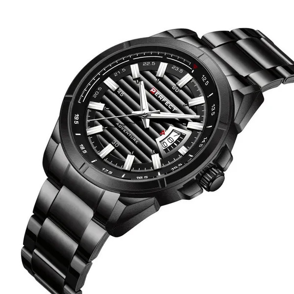 Az Perfect M102-10 férfi karóra stílusos, teljesen fekete kivitelben készül, így bármilyen öltözékhez könnyen illeszthető. A japán Miyota quartz szerkezet pontos időmérést garantál, míg a praktikus dátumkijelzés megkönnyíti a mindennapokat.