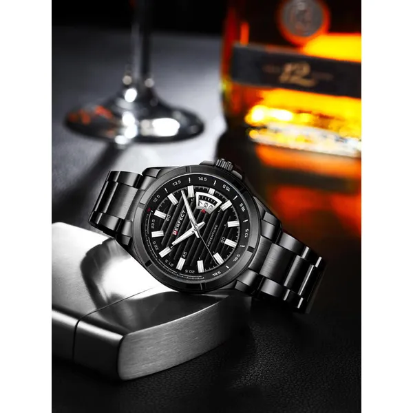 Japán Miyota szerkezetének és karcálló ásványi üvegének köszönhetően precízen működő, tartós kiegészítő, amely elegáns fekete megjelenésével minden öltözéket stílusossá tesz. A dátumkijelzés és a díszdoboz praktikus, ajándékkész csomaggá emeli a karórát.