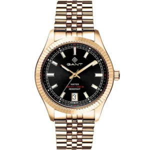 Elegáns rozéarany-ezüst nemesacél karóra mélykék számlappal és WR100 vízállósággal, karcálló ásványi üveggel és pontos japán kvarc szerkezettel a mindennapokhoz. Eredeti GANT díszdobozban érkezik, így azonnal ajándékozható.