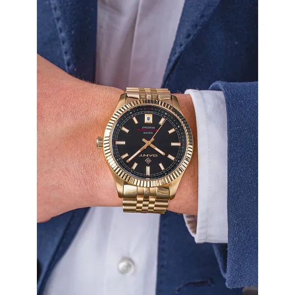 Gant Sussex férfi karóra kék számlappal, rozéarany-ezüst acél szíj, WR100