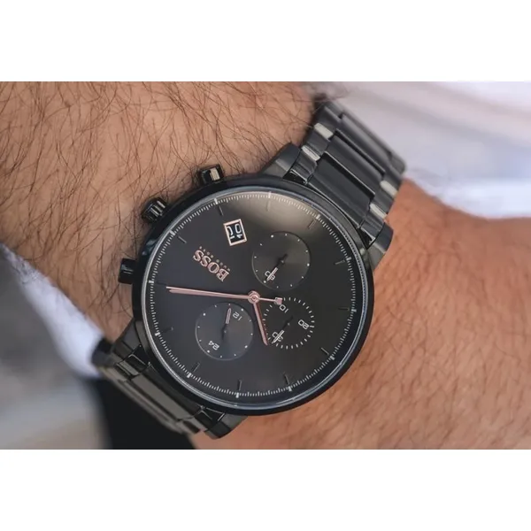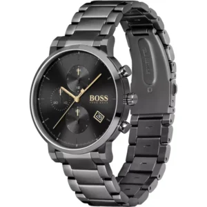 Elegáns fekete PVD bevonatú acél karóra kronográffal, dátumkijelzővel és 5 ATM vízállósággal a Hugo Boss minőségével. Díszdobozban érkezik, így tökéletes ajándék, miközben tartós kivitele és pontos kvarc szerkezete a mindennapok során is megbízható társ.