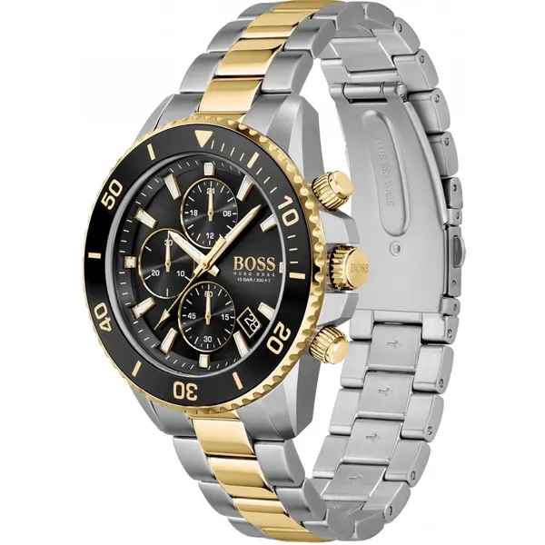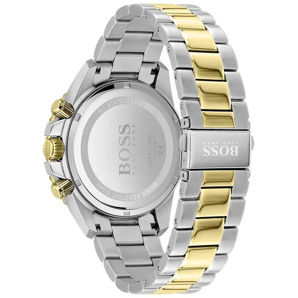 A Hugo Boss Admiral 1513908 férfi kronográf karóra kifinomult kiegészítő, amely tökéletesen ötvözi a sportos funkcionalitást és a prémium megjelenést. A kéttónusú, arany- és ezüstszínű rozsdamentes acél tok és csat rendkívül tartós, allergiamentes bevonattal ellátott, így hosszú éveken át megőrzi fényét. A karcálló ásványi üveg mögött elhelyezkedő mélyfekete számlap arany indexei könnyű leolvashatóságot kínálnak.