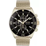 A Hugo Boss Ocean Edition 1513703 férfi kronográf karóra egyszerre testesíti meg a sportos funkcionalitást és az elegáns megjelenést. Az aranyszínű, PVD-bevonatú nemesacél tokot és szíjat fekete számlap egészíti ki, amelyen a stopperfunkció alszámlapjai kapnak helyet. A kvarc szerkezet megbízható pontosságot biztosít, míg a 10 ATM (WR100) vízállóság gondoskodik róla, hogy az óra a hétköznapokban, úszás közben vagy sekély merülés során is magabiztos társ legyen.