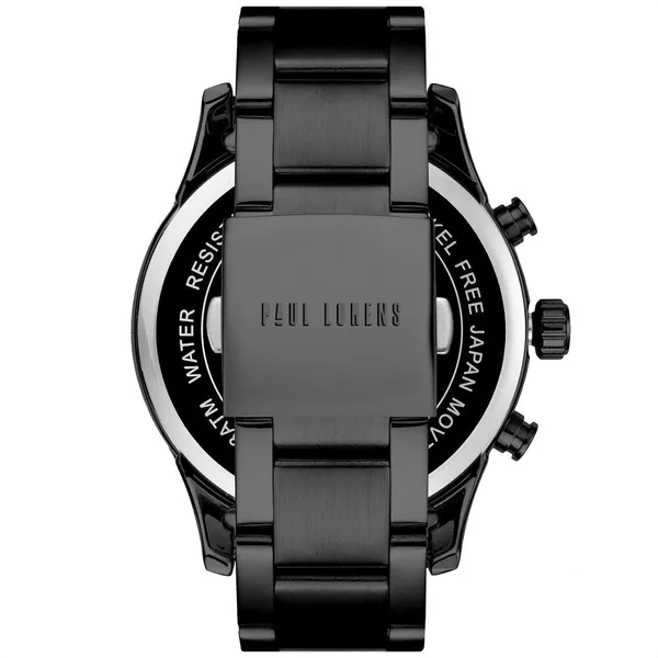 Paul Lorens férfi kvarc karóra, 45 mm, fekete nemesacél szíj, díszdobozzal