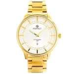 A Perfect M114 férfi karóra a letisztult, klasszikus dizájnt ötvözi a megbízható Miyota kvarc szerkezettel. Az arany IPS bevonatú nemesacél tok és szíj allergiamentes és kopásálló, míg az ezüst számlap arany indexekkel könnyen leolvashatóvá teszi az időt.