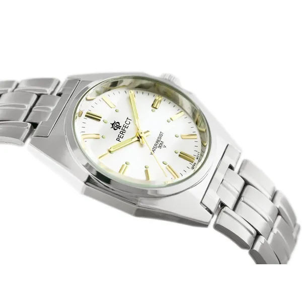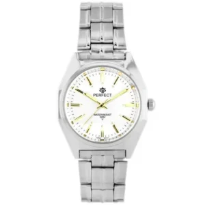 Elegáns, rozsdamentes acél Perfect P186 férfi karóra letisztult fehér számlappal és arany indexekkel, amely bármilyen üzleti vagy hétköznapi öltözéket magabiztosan feldob. Japán Miyota kvarc szerkezete megbízható pontosságot, az ásványi üveg és a WR30 fröccsenés elleni vízállóság pedig tartós mindennapi használatot biztosít.