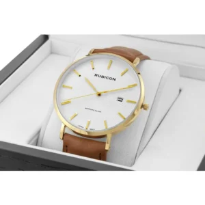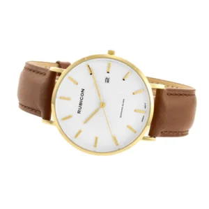 Rubicon férfi óra – zafír, arany, bőr szíj