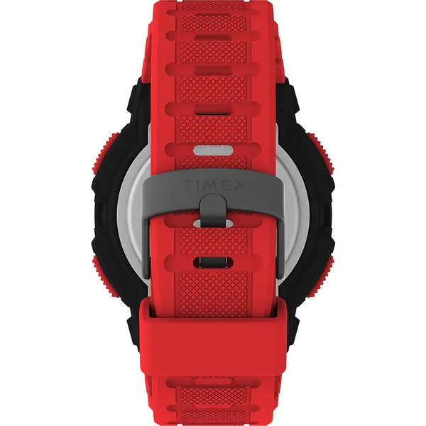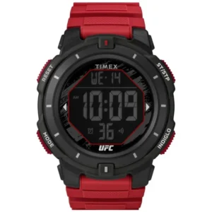 A Timex UFC Rush férfi digitális karóra ideális társ az aktív mindennapokhoz és az edzőteremhez. Rendkívül könnyű műanyag tokozással és rugalmas, piros színű szíjjal készült, így kényelmes viselet hosszú órákon át is. A robusztus felépítés mellett a WR100 vízállóság gondoskodik róla, hogy úszás közben is magabiztosan viselhesd.