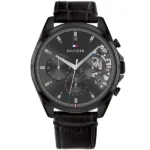 A Tommy Hilfiger Baker 1710452 férfi karóra modern eleganciát és mindennapi praktikusságot ötvöz. A 44 mm-es, fekete PVD-bevonatú 316L rozsdamentes acél tokban japán kvarc szerkezet dolgozik, amely körülbelül 2 évnyi elemélettartamot biztosít. A grafitszürke számlapot ásványi üveg védi, a jobb oldalon részben látható mechanika, míg 12 óránál a márka jellegzetes logója emeli ki az órát.