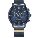 A Tommy Hilfiger Blake 1782305 női karóra a modern elegancia és a megbízható funkcionalitás találkozása. A 38 mm-es, kék PVD bevonatú rozsdamentesacél tok és az egységes színű nemesacél szíj tartós, mégis könnyed viseletet biztosít, a napfénysatírozott kék számlap pedig egyedi, ipari hangulatot kölcsönöz.