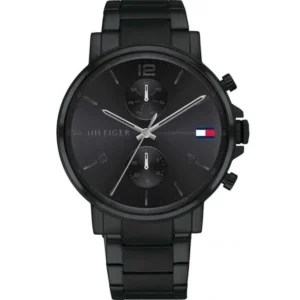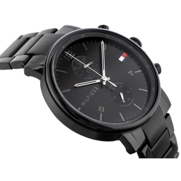 Érezd a modern elegancia és a megbízható funkcionalitás tökéletes összhangját ezzel a Tommy Hilfiger Daniel férfi karórával. A teljesen fekete, ionbevonatú nemesacél tok és szíj határozott, urbánus stílust sugároz, miközben a 44 mm-es kerek tok kényelmes viseletet biztosít a csuklón. A kontrasztos grafitszürke indexekkel ellátott fekete számlapot karc- és ütésálló minerálüveg védi.