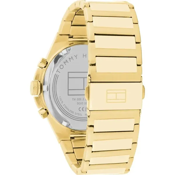A Tommy Hilfiger Dexter férfi karóra modern, mégis időtlen eleganciát kínál a mindennapi megjelenéshez. Aranyszínű 316L nemesacél tokja és branszólata ellenáll a korróziónak és hipoallergén, a barna napsugár-csiszolású számlap pedig kifinomult kontrasztot ad. A megbízható kvarc szerkezet dátumkijelzéssel, a hét napja mutatóval és 24 órás segédszámlappal segíti a tájékozódást, a mineralüveg pedig védi a finom részleteket.