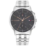 Emeld outfitjeid színvonalát a Tommy Hilfiger Easton férfi karórával, amely a mindennapok praktikumát és az alkalmi eleganciát ötvözi. A 44 mm-es, rozsdamentes acél tok és a hozzá illő ezüst színű szíj 316L minőségű, hipoallergén anyagból készült, így ellenáll a korróziónak. A grafitszürke számlapot rózsaarany indexek és két funkcionális segédszámlap teszi különlegessé.