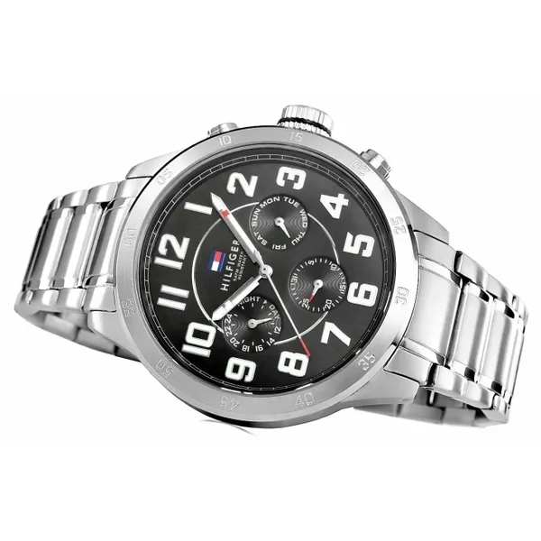 Tommy Hilfiger férfi karóra, 46 mm, fekete számlap, acél szíj, WR50