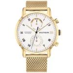 Valódi stílus és megbízhatóság egy 44 mm-es, aranyszínű nemesacél tokban: a Tommy Hilfiger Kane férfi karóra tökéletes választás az üzleti találkozóktól a hétvégi programokig.